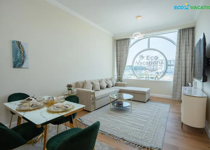 Palm Jumeirah ist etwa 5 Minuten zu Fuß von dem 86 m² großen Apartment Eco-Luxe Retreat - Minutes From Global Village Dubai entfernt, während sich Dubai World Cup in der Nähe befindet.